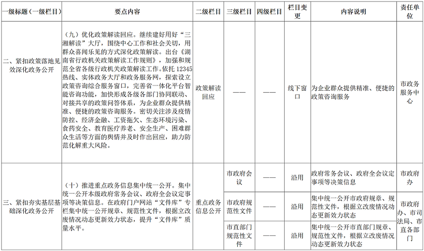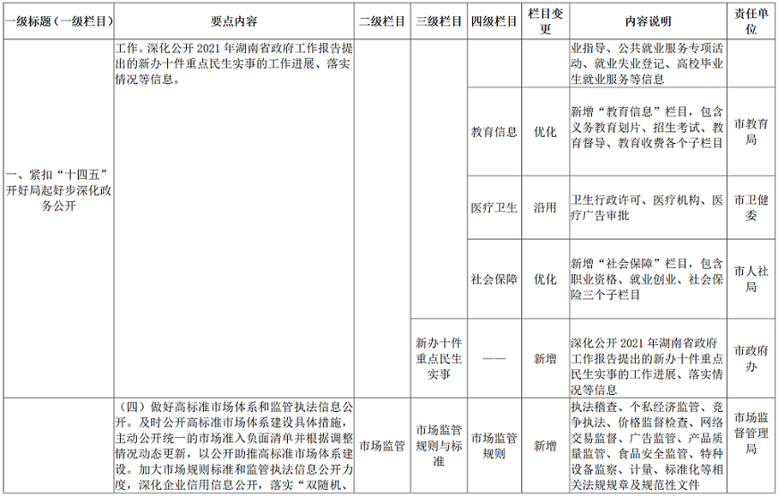 線上賭博落实《湖南省2021年政务公开工作要点》责任分解表